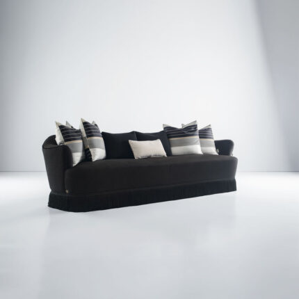 صوفة Cozy Elegance Curve تجمع بين التصميم المنحني المميز والراحة الفائقة، بمقاس 385×83×65 سم وطاولة جانبية مدمجة تضيف وظيفة وأناقة، لتكون القطعة المركزية المثالية لغرفة المعيشة الحديثة.